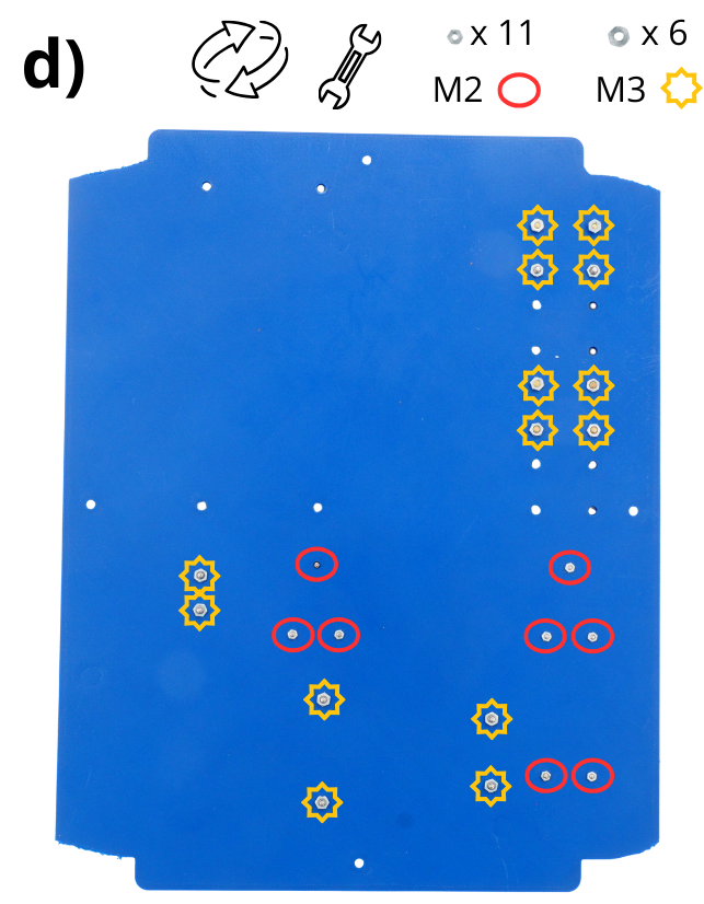 Retourner alors la plaque, et fixer ces vis à l’aide d’écrous M3.
