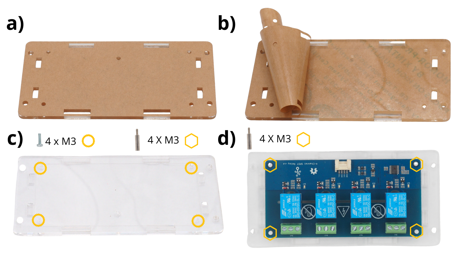 Prendre les différents éléments Plexiglas de la carte Grove 4 relais.