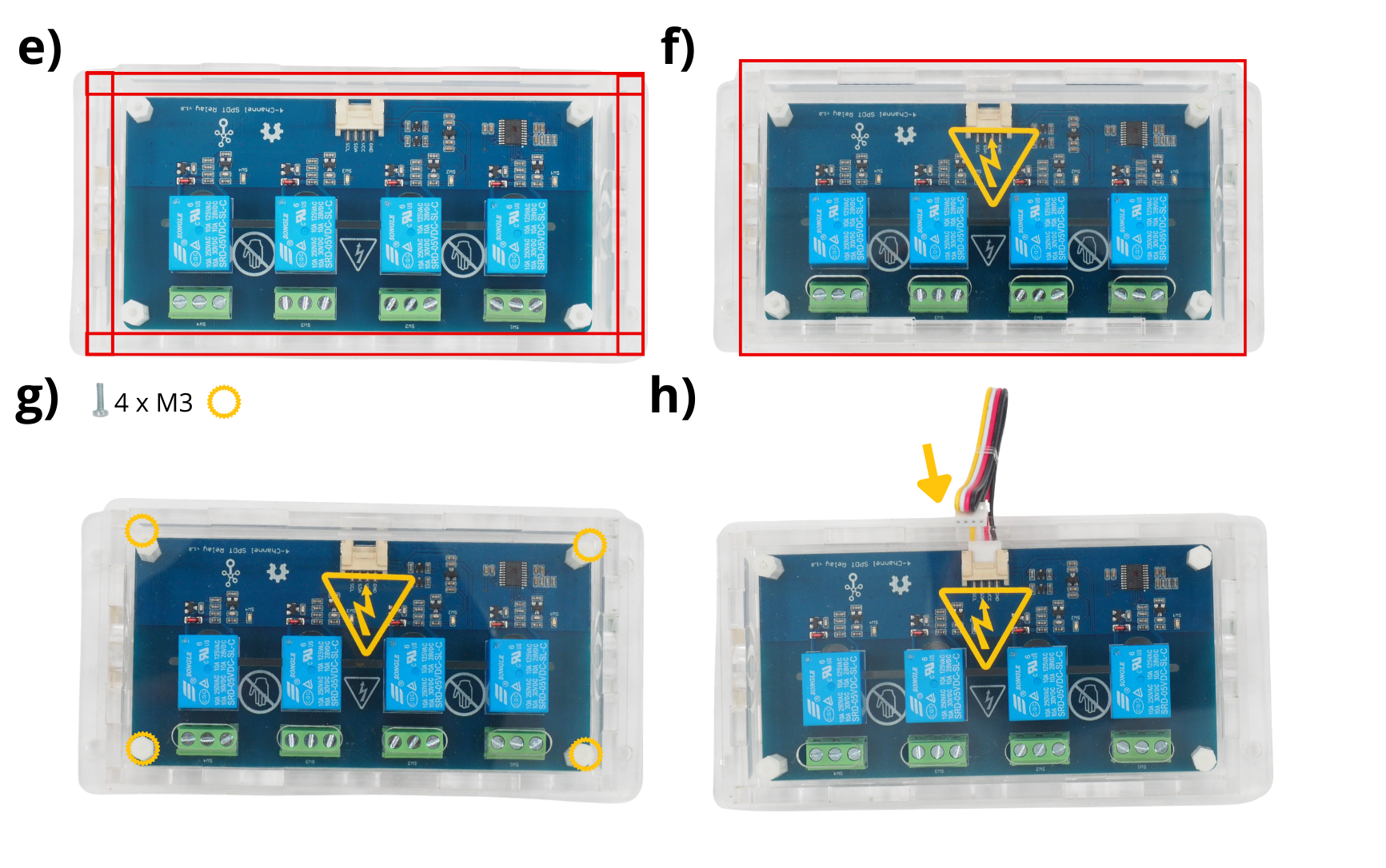 Placer le couvercle en Plexiglas sur les entretoises M3 prévu à cet effet, au dessus de la carte électronique.