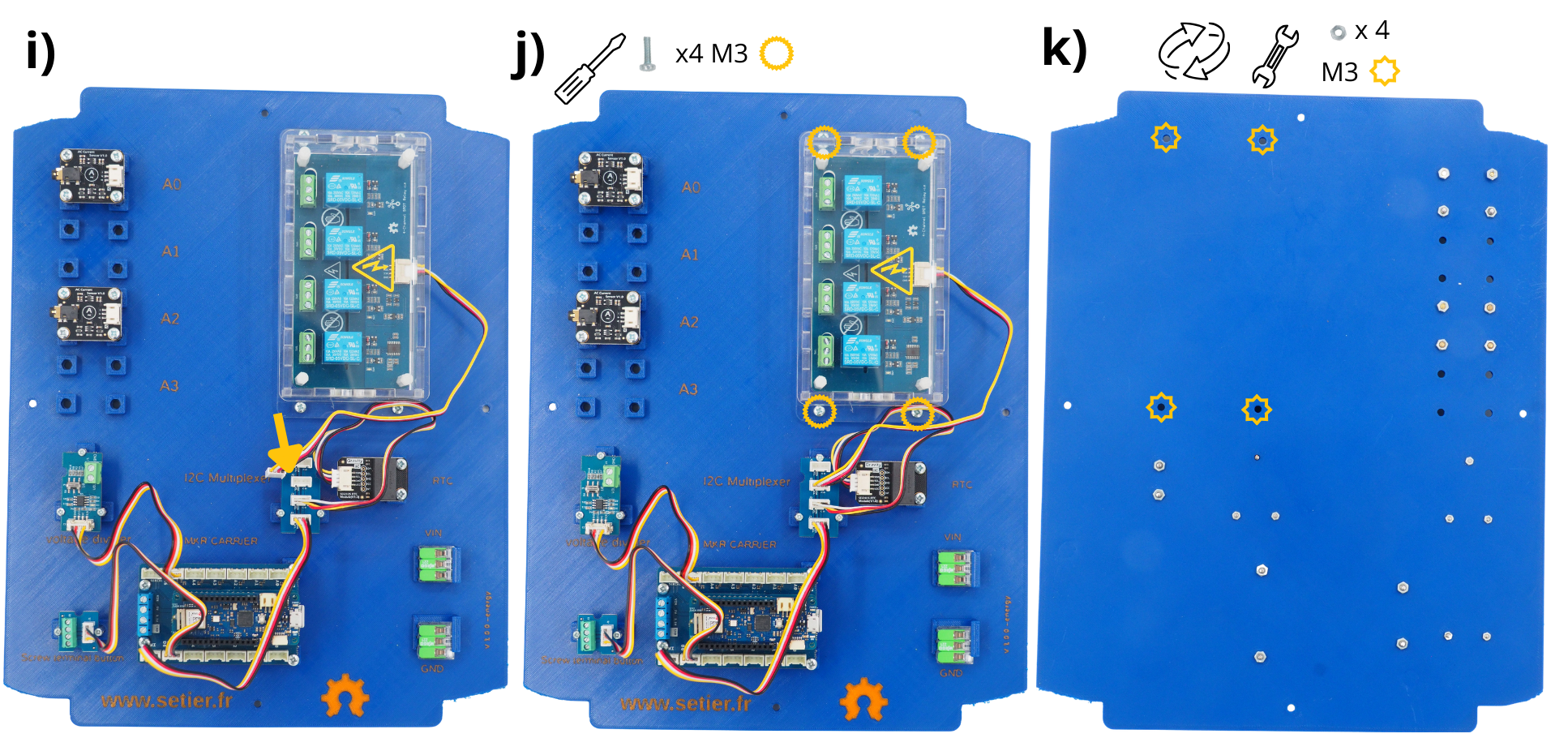 Retourner alors la plaque, et fixer ces vis à l’aide d’écrous M3.