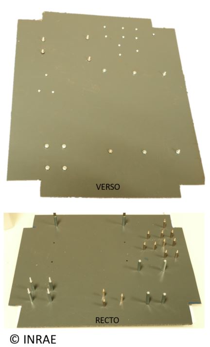 Prendre un morceau de bois, PVC, ou tout élément non conducteur, et le couper suivant le fichier « Physico_Chemical_datalogger_hole.pdf » afin de réaliser la plaque fixation des différents éléments du datalogger. Percer les trous afin de placer les différentes entretoises.