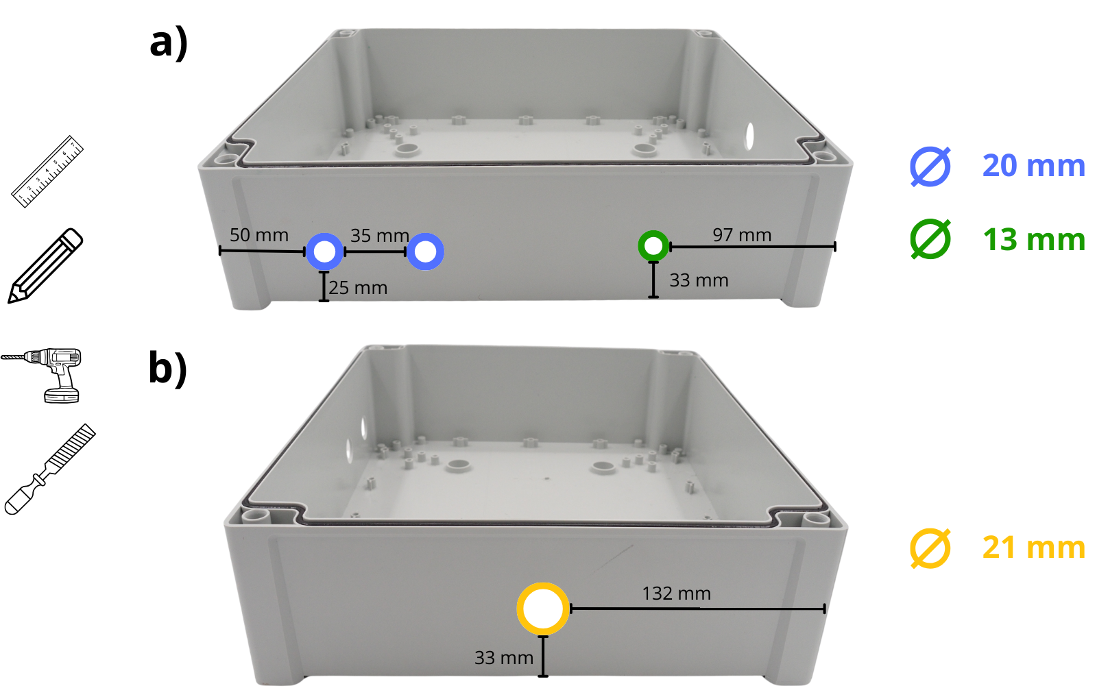 Cerrar la caja atornillando la tapa con los 4 tornillos suministrados.